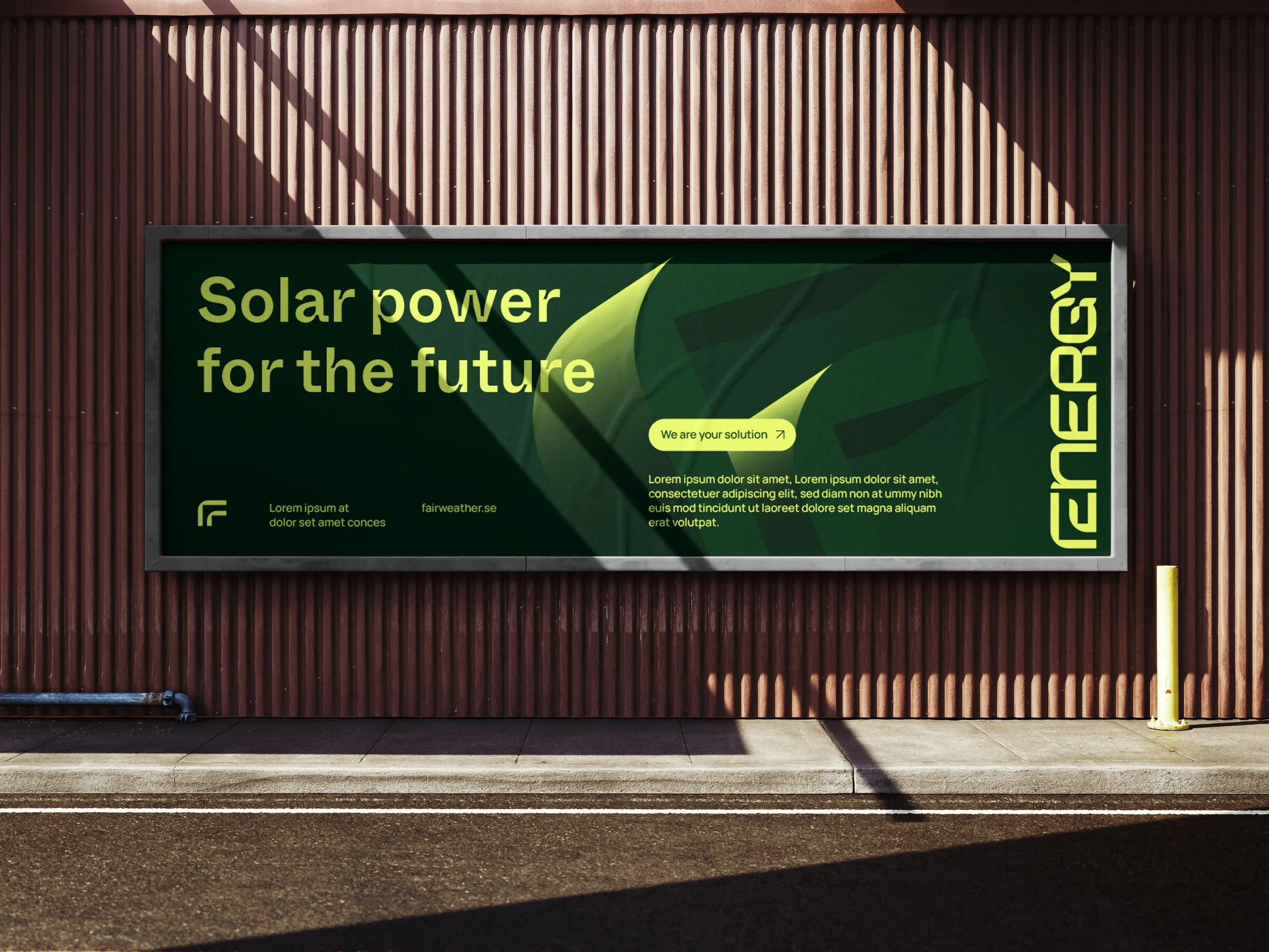 Fairweather Energy is a Scandinavian energy company specializing in solar power and electricity storage through power stations. Under the concept “To the Future Together,” I developed their brand identity and website, positioning Fairweather as a modern-day knight in tech armor, safeguarding industries from unreliable players. The identity reflects their forward-thinking approach, with a focus on sustainability and innovation. With the message “Sunlight shaping our tomorrow,” the brand highlights their commitment to harnessing clean energy for a brighter, more secure future.